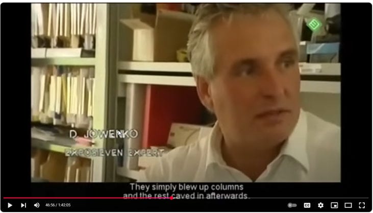 The building did come down in complete classical controlled demolition. It came down on its own footprint. There's no question. And then talk to me a little bit. Obviously as a professional in the fire department for 30 plus years, they're saying that blaming it on a few office fires. Well, if it wasn't so serious a situation, that would be completely laughable. That is ridiculous. First of all, our guys were up there. They were calling for additional hand lines to mop up the isolated pockets of fire. And let me just explain one thing.