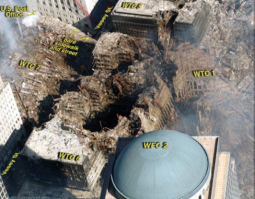 The firefighting effort at WTC5, immediately above WTC6 and next to WTC7, disproved the NYC lie there was insufficient water to fight WTC7.