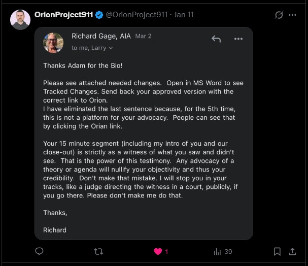 Gage was invited back to AE911 to help save the organization, as it was in decline monetarily since Gage was kicked out in 2020 / 2021, and once Gage had a little bit of access to their systems, he immediately started removing podcast interviews poste etc that called foul of what happened at the Pentagon…