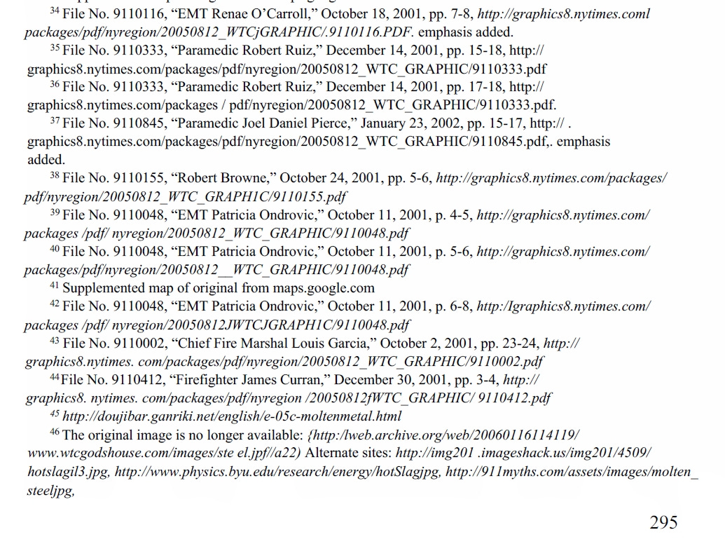 It is so strange that Mr Gage accuses Dr Wood of denying testimony of the sound of explosions, and uses for reference pages where Dr Wood quotes first responders discussing what they saw exploding. One must wonder if Mr Gage is OK. Perhaps he is in need of medical care. Seriously, why would Mr. Gage accuse Dr Wood of denying first-responder testimony of explosions and then cite pages where she shows the first-responder testimony of what was exploding?