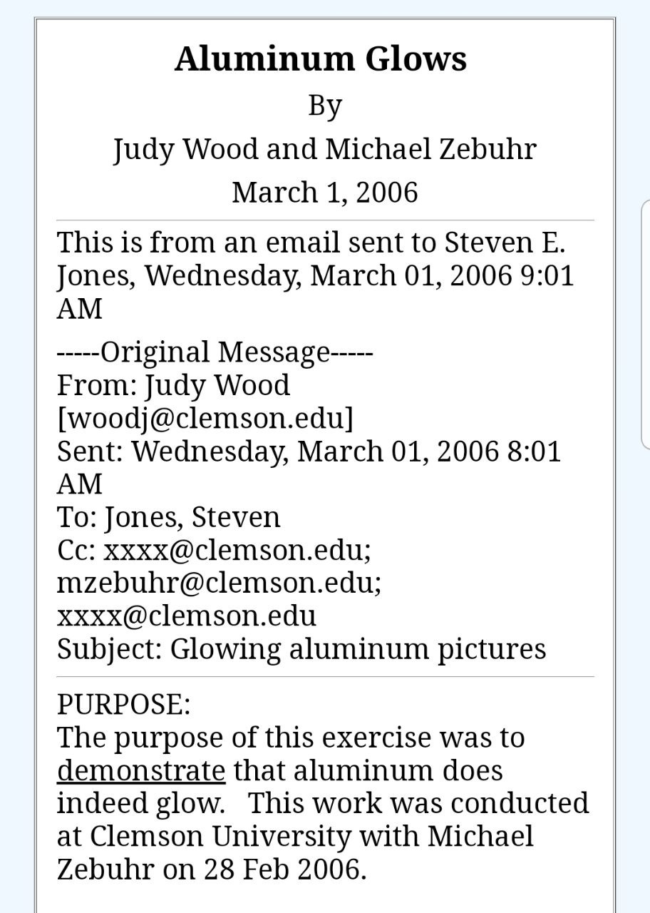 - Gage goes on to LIE about aluminium not glowing in daylight, which Dr Wood proved, and shortly after that, her assistant who helped her with the study, was killed.