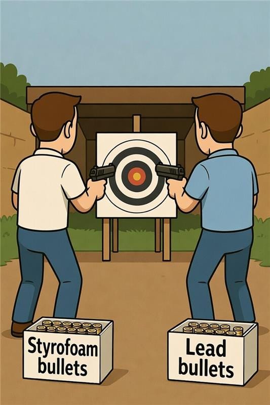 Were the bullets used in the gun made of steel and lead, or were they made of Styrofoam? Well, why couldn’t it be both?