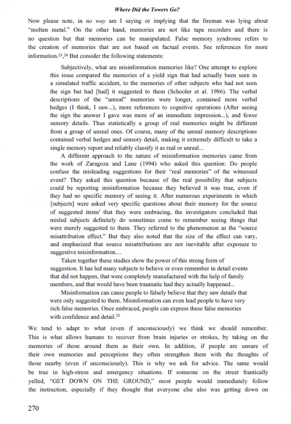 Page 270: Dr Wood explaining testimonies of “molten metal” can easily be manipulated in people’s memories.