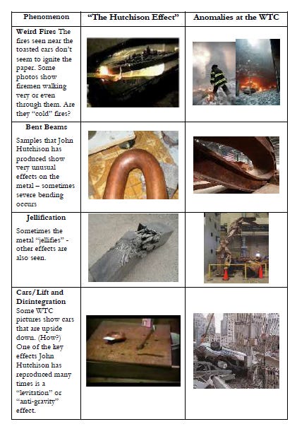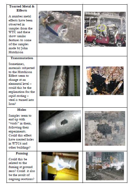 Have a look at these similarities of the Hutchison Effect and the anomalies in the WTC rubble.